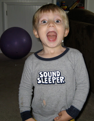 And sure enough there is a hole in his PJ shirt. All I am thinking is thank goodness it was his PJs and not Sunday morning in his Sunday clothes.